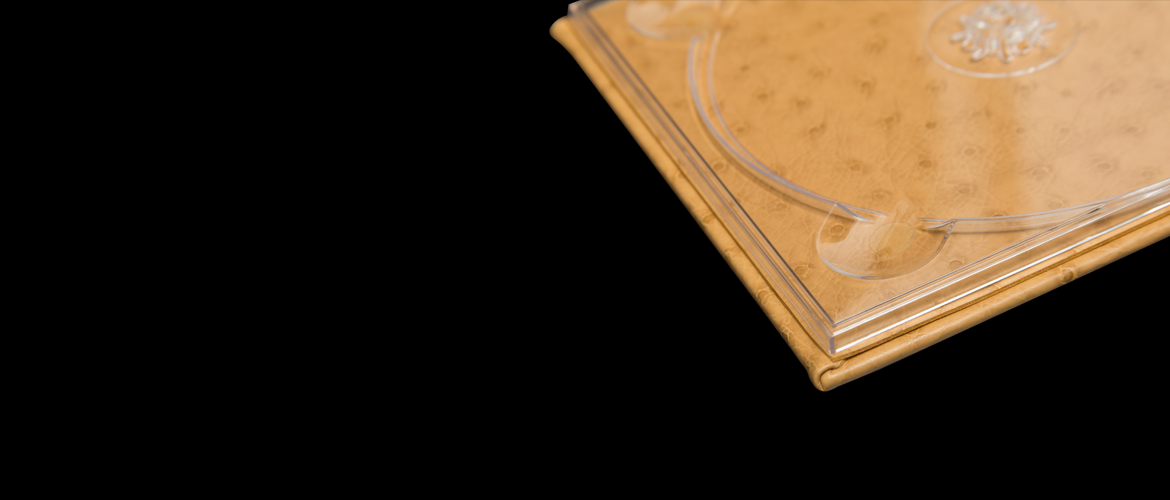 Twarda oprawa pudełka jest w pełni wykończona ekoskórą lub płótnem z naszej oferty.
