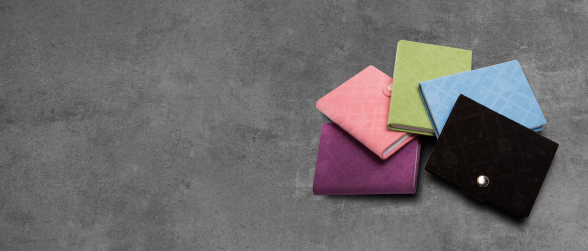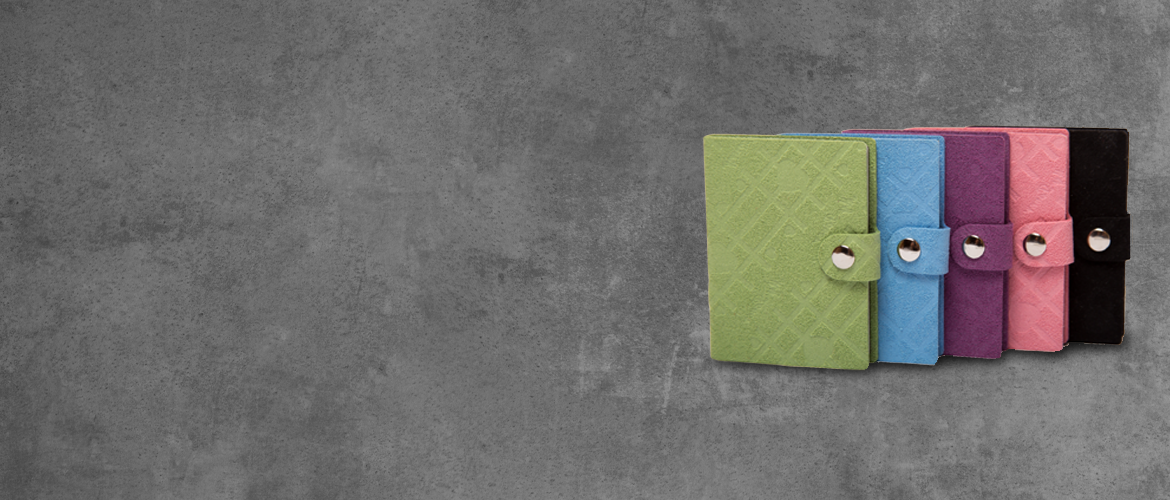 Oferujemy 5 kolorów okładek z nubuku z wytłoczonym wzorem:
